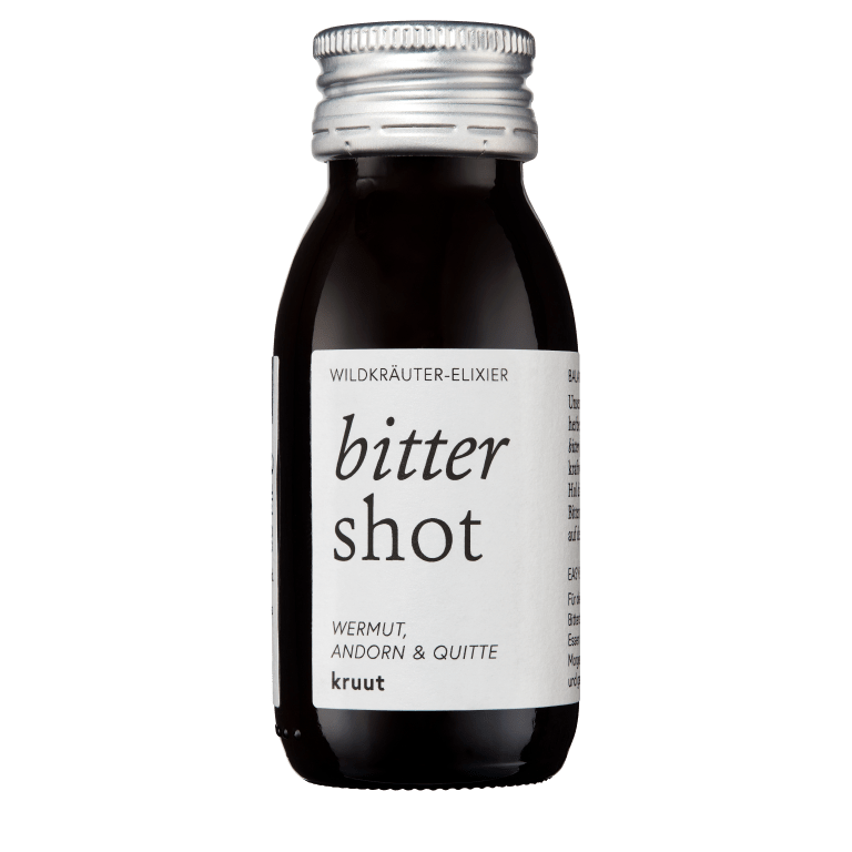 Der Bitter Wildkräuter-Shot von kruut zeichnet sich durch seine biologischen und heimischen Zutaten aus. Die feinentwickelte Oxymel-Rezeptur bestehend aus Blütenhonig, Apfelessig in Demeterqualität und sorgfältig ausgewählten Wildkräutern, wie Wermut, Andorn und Pfefferminze sorgt für ein echtes Geschmackserlebnis. Das Herstellungsverfahren basiert auf Jahrtausende altem Wissen und sorgt noch heute für einen leckeren Trinkgenuss.