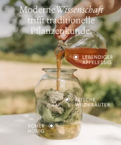 Naturtrüber Apfelessig ist ein jahrtausendealtes, fermentiertes Hausmittel. Wir verwenden es in seiner natürlichsten, unpasteurisierten Form.