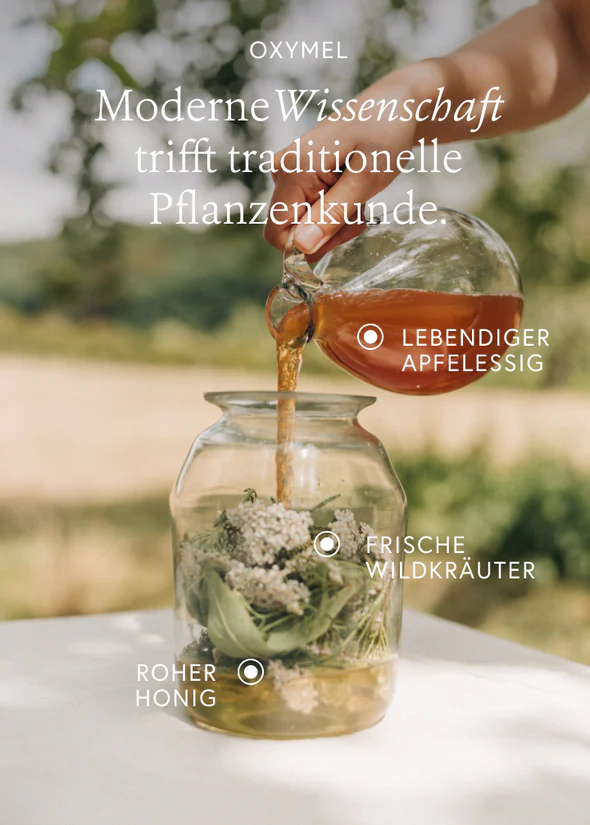 Der Zuckergehalt ist rein natürlicher Art durch hochwertigen Honig. Pro Portion enthält ein Glas Wasser mit 1 EL Oxymel nur 4,6g Zucker. Viel weniger als z.B. ein Glas Apfelschorle.
